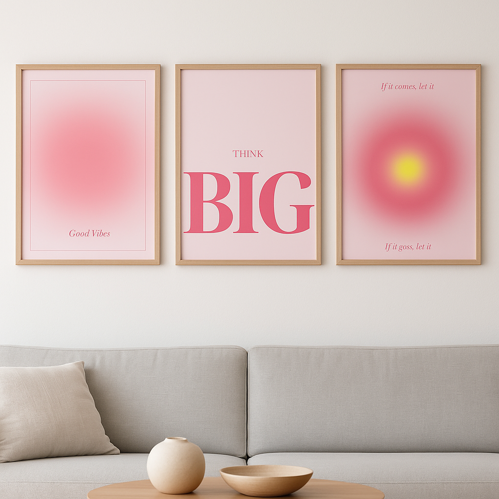 Desde $1890Set x3 Cuadros Preppy rosa (good vibes,think big,If it comes…)