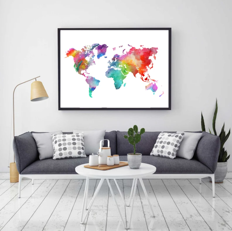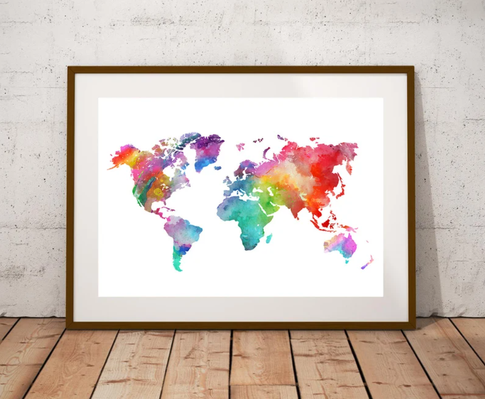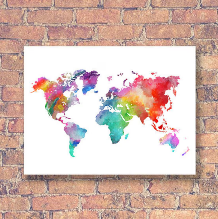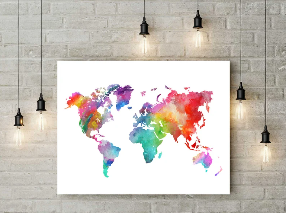 Cuadro Mapamundi estilo acuarela de colores