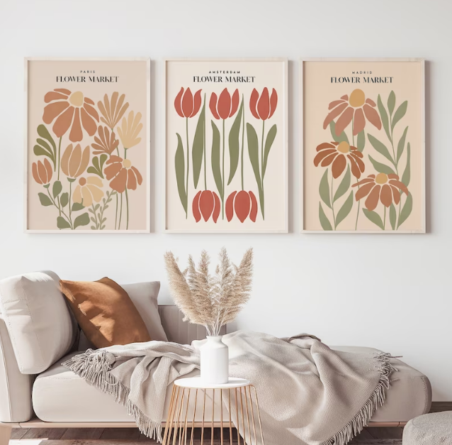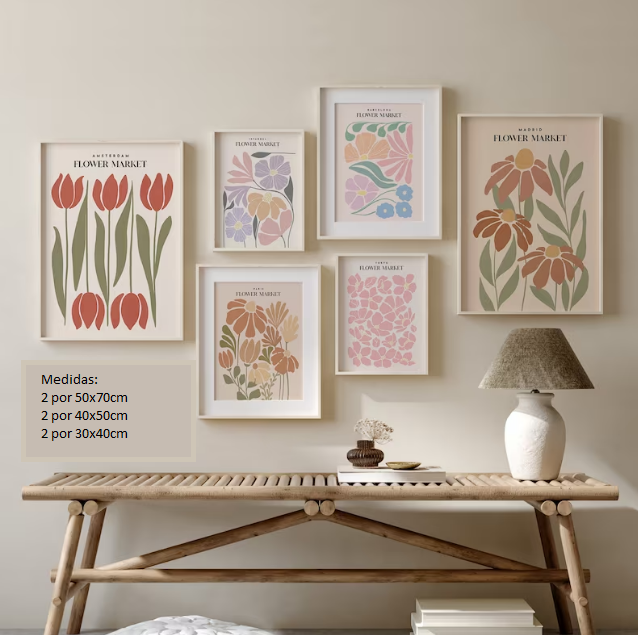 Set x3 Cuadros Mercado de Flores Boho